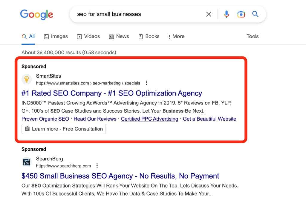 The sponsored label is also more prominent, with a bold black font instead of the previous green font. This update makes it easier for users to identify sponsored results, reducing the chances of accidentally clicking on an ad when looking for organic search results.
