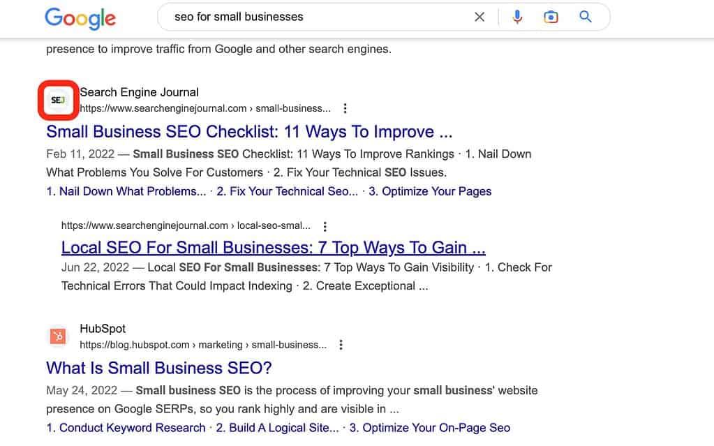 The favicons also appear more prominently on the SERP, making it easier for users to differentiate between different sites.